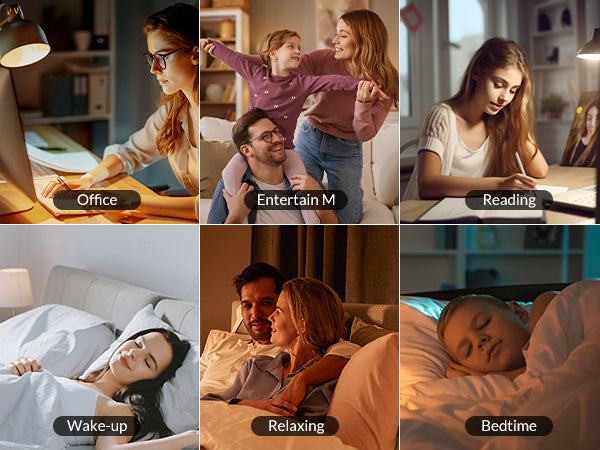 With 6 thoughtfully designed lighting scenarios: Guest, Reading, Office Daybreak, Pre-sleeping, Awakening.
