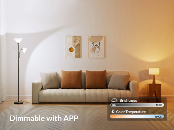 Effortlessly control your lighting with the app,seamlessly dimming from 1% to 100%. With up to 900 lumens of brightness, find just the right light for reading, working, or unwinding. - One-Click with 6 Scenes.Enjoy Every Moment.