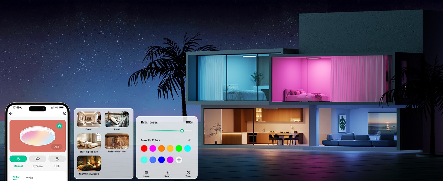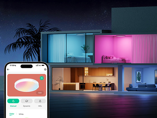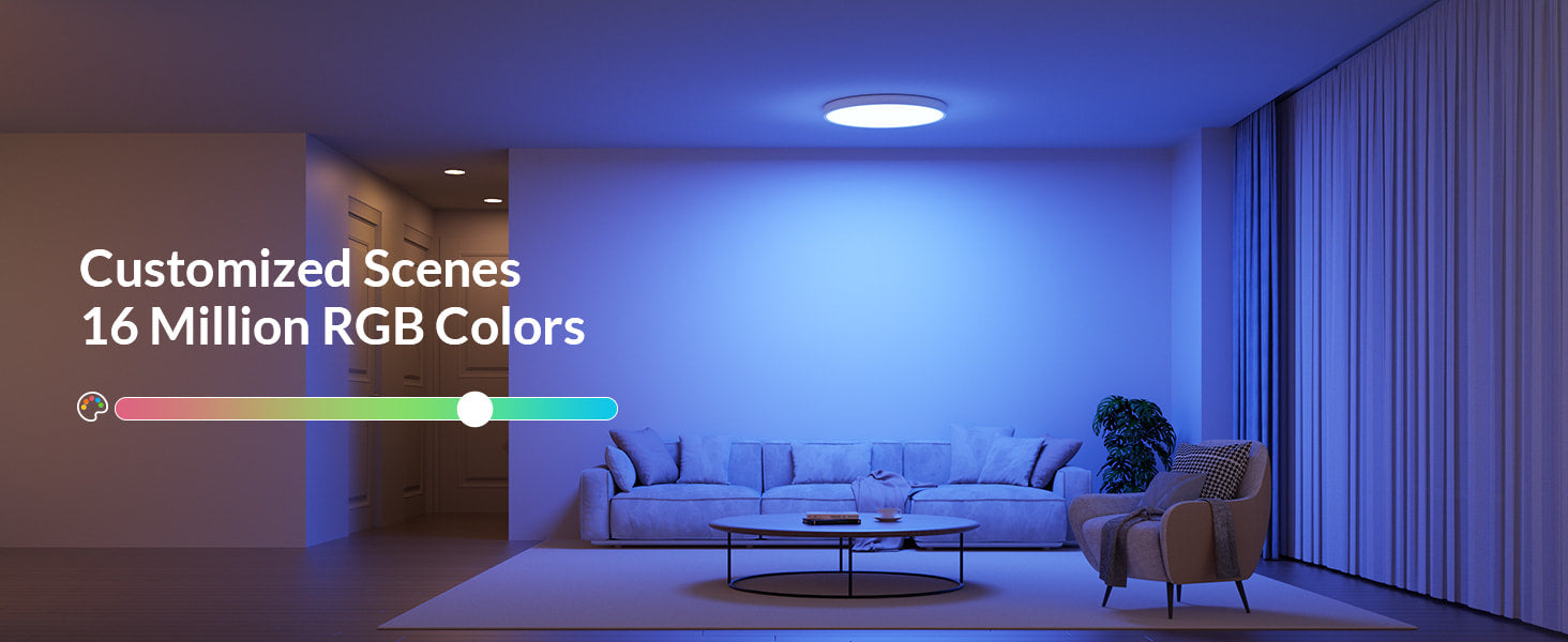 Featuring vibrant RGB colors and brilliant white light, this ceiling light fixture enhances any mood. With LumiEdge-Tech and a transparent housing design, enjoy a wide 180° luminous angle for even, flicker-free illumination. - Over 28 Lighting Scenes