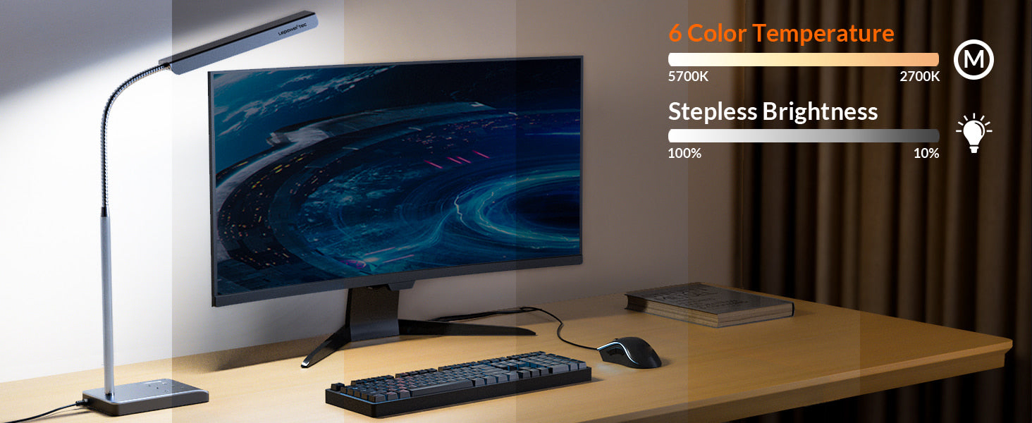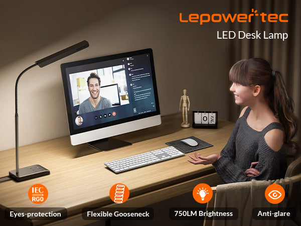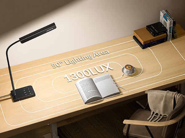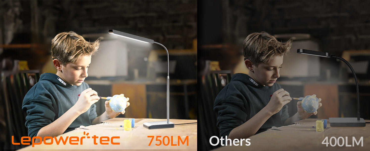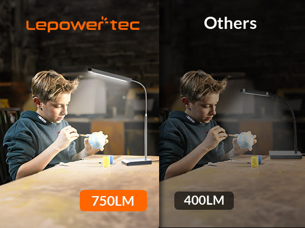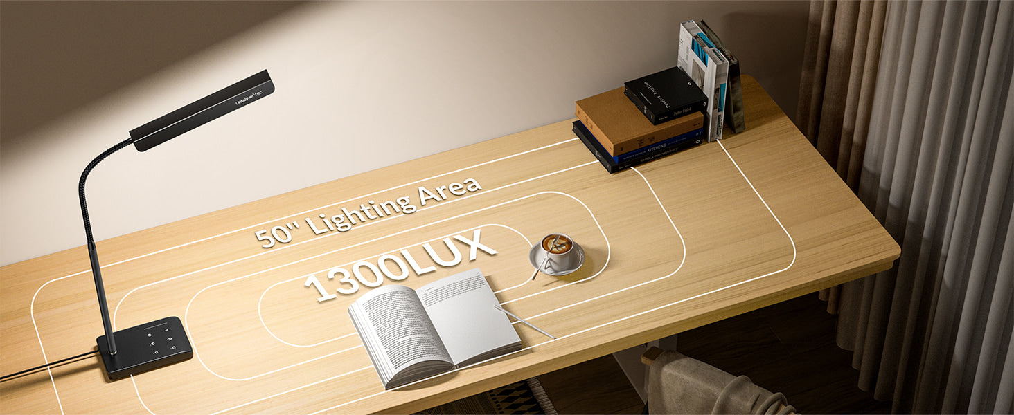 Lepower-tec office desk lamp not only with 1300lux soft bright light but also with anti-glare design, no dazzling light, it can effectively reduce visual fatigue.