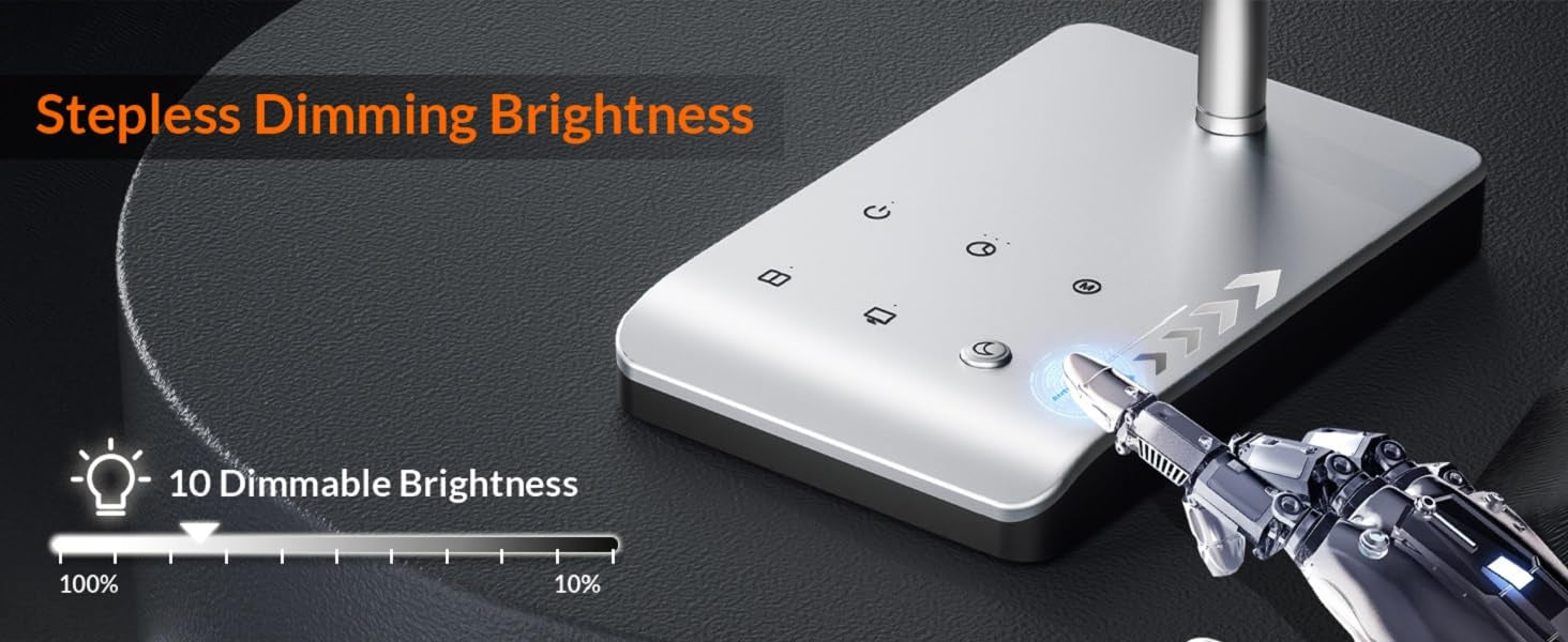 Lepower-tec led desk lamp easily adjust the brightness to suit your mood or surroundings by swiping your finger. The dimmable desk light is perfect for working, studying, reading, drawing, sewing, doing nails doing puzzles, crafting, and etc.