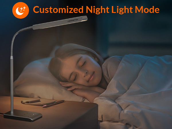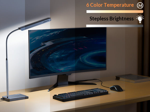 Unique Features: Reading/working/night light mode, 6 Color Mode x Stepless Dimming Brightness