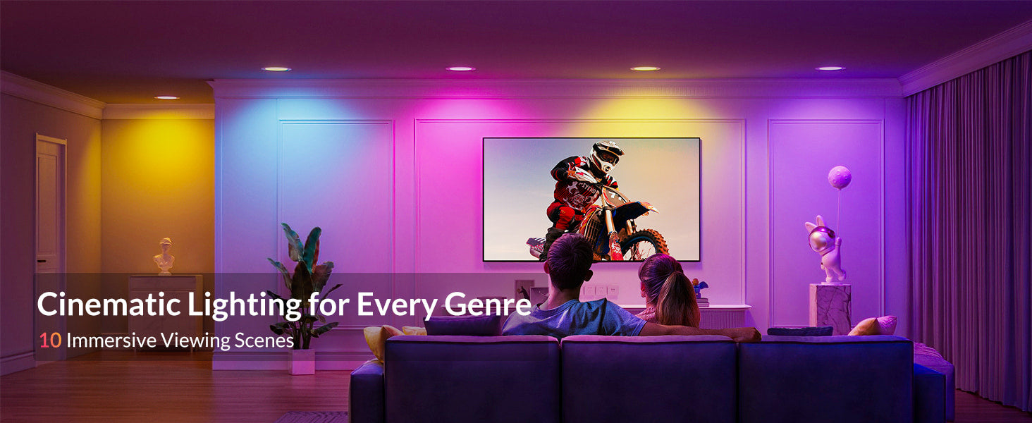 Transform your home into a cinematic paradise that adapts to various film genre. Choose from 10 unique light effects that bring each scene to life for an immersive cinematic experence. - Human-Centered Lighting. Healthy Light Ambience.