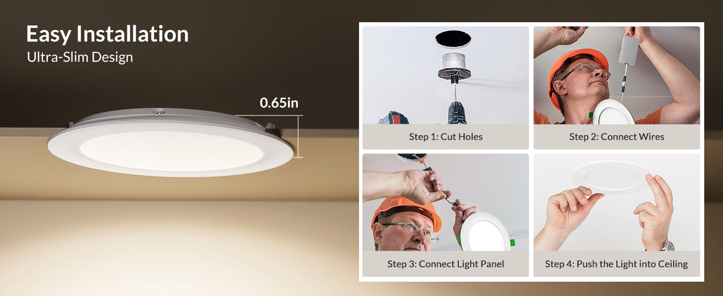 Easy to install with precise markings and secure spring clips, making setup a breeze. At just 0.65 inches(16.5mm) thick, full die-cast ultra-thin profile makes it easy to handle low ceilings and tight spaces. Enjoy brilliant lighting without the bulk.