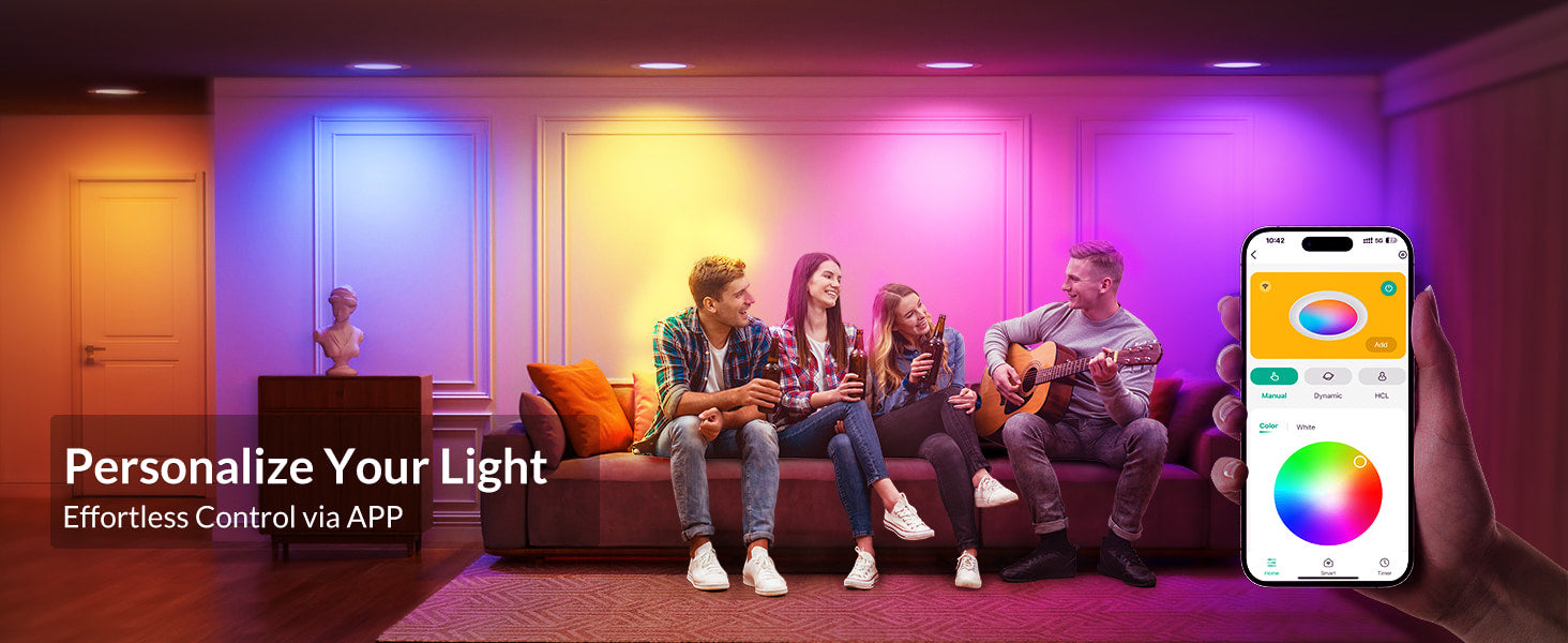 Use the App for stepless dimming from 1% to 100% brightness, offering up to 1100LM, and over 16 million color options for the perfect ambiance--flicker-free and evenly disturbed.