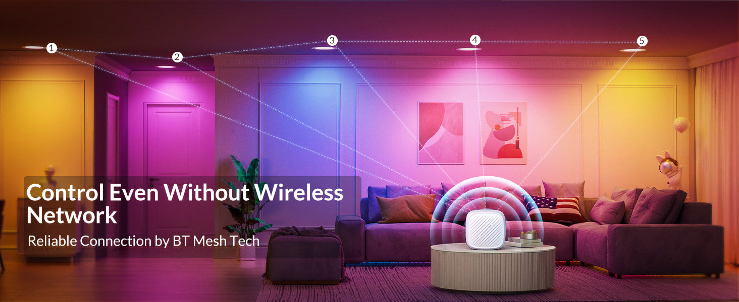 Enjoy stable connection with BT mesh technology, which frees up your router's bandwidth. Paired with gateway. Control your lights without internet access for reliable performance. No need to worry about losing connection!