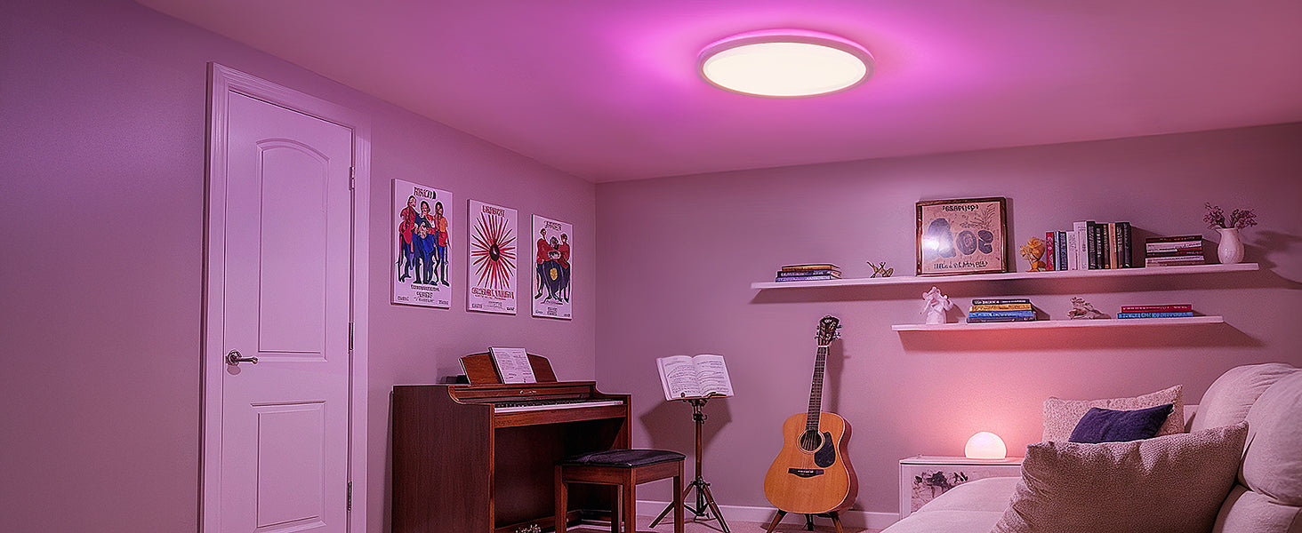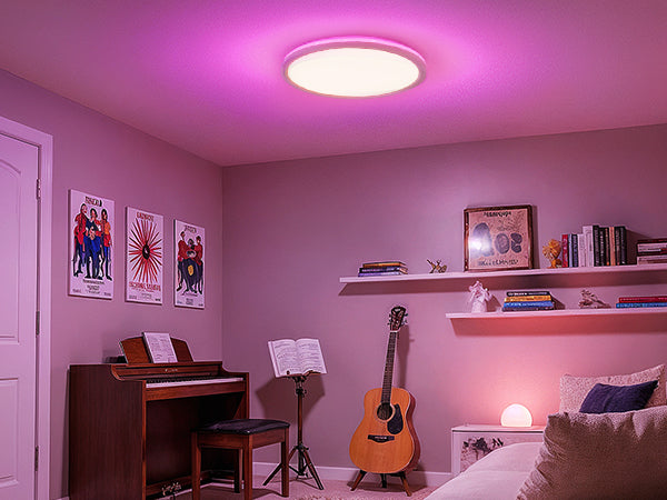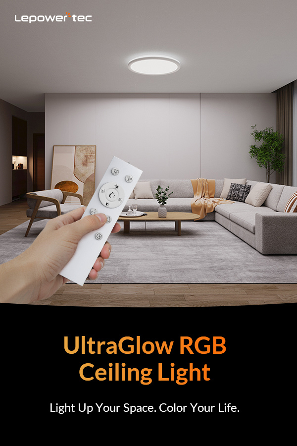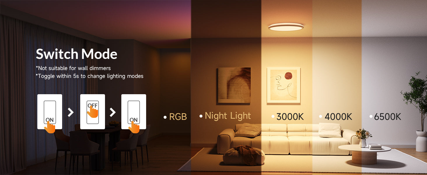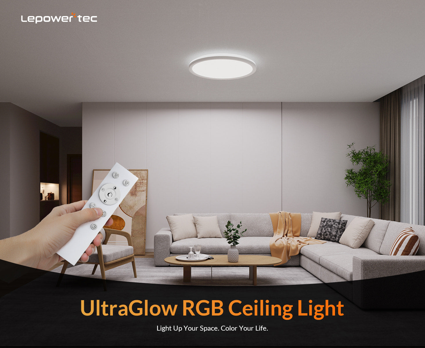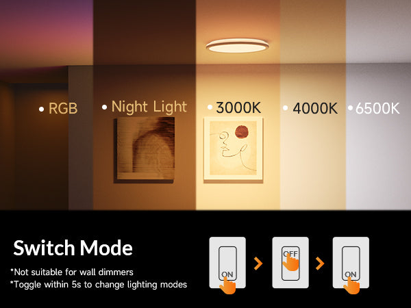 Equipped with 252 high-efficiency LED beads, it delivers up to 2600 lumens of brilliant white light, equivalent to the brightness of two 150W incandescents-while reducing energy consumption by up to 92%. Feature an even, flicker-free lighting design to protect your eyes, ideal for daily use, reading and office work. Comes with a night light mode and convenient auto-off timer (choose 60 seconds or 60 minutes) to create a cozy, sleep-friendly atmosphere. - 7-Color RGB Dimmable Ceiling Light