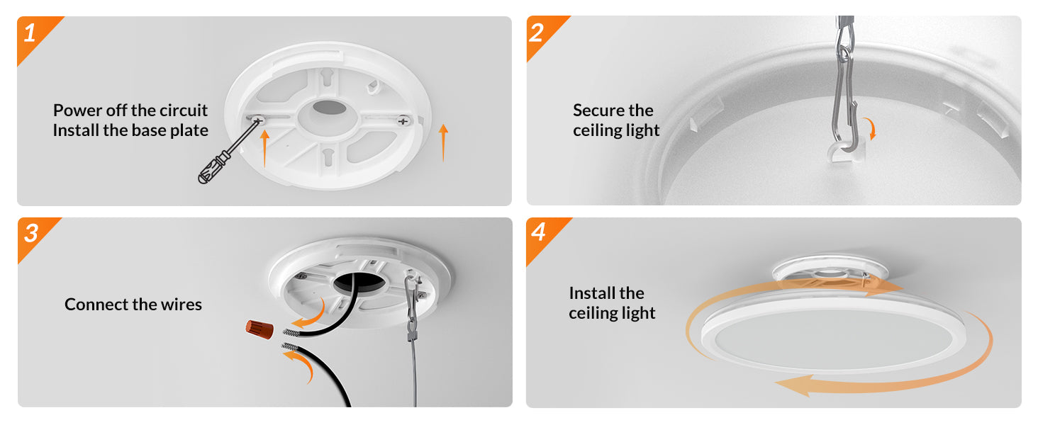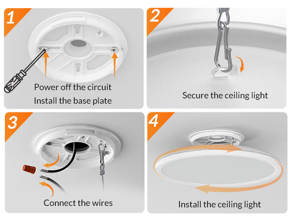 This ceiling light fixtures easily adjust brightness, color temperature, RGB lighting, or night light mode with the touch of a button. With a control range of up to 7 meters, you can adjust settings from anywhere in the room. Enjoy auto-reset settings with the memory function for a seamless experience. - Easy Installation Design