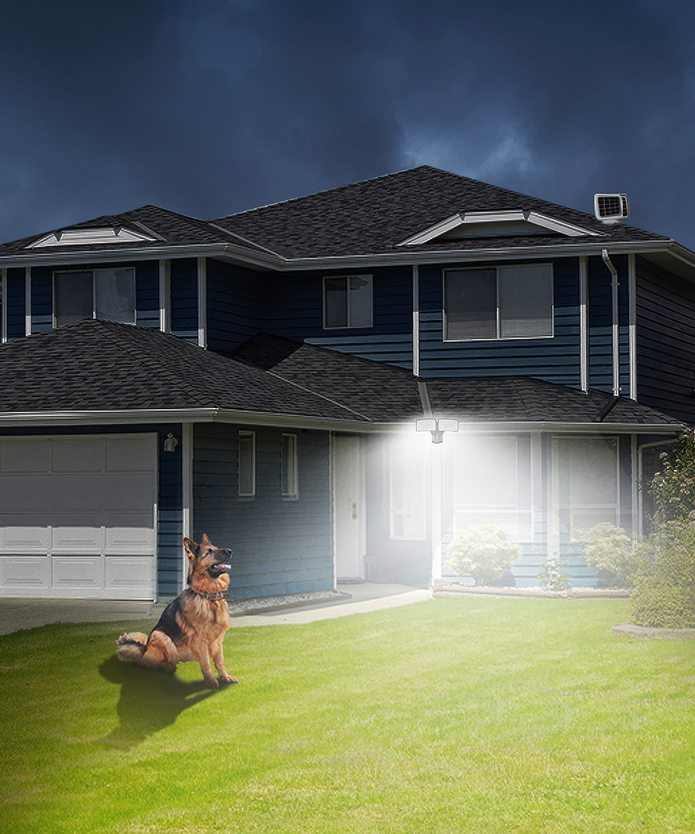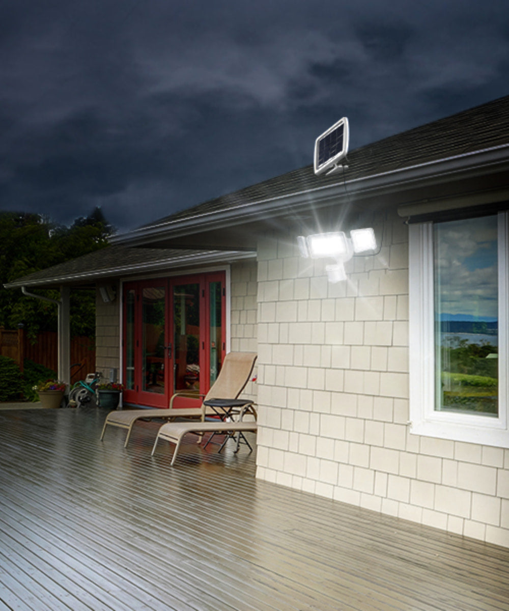 - Protect your property with the adjustable 3-head solar security light that costs you $0 on electricity.