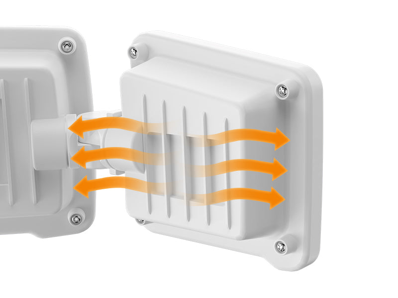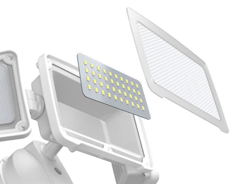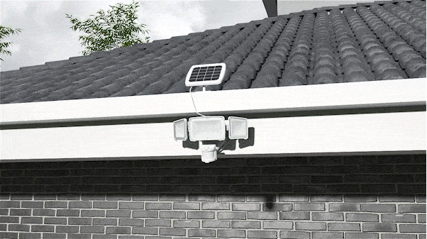With 38W per light head, the solar security light produces up to 5500K color temperature white Light. Maintains full brightness for up to 50,000 hours.
