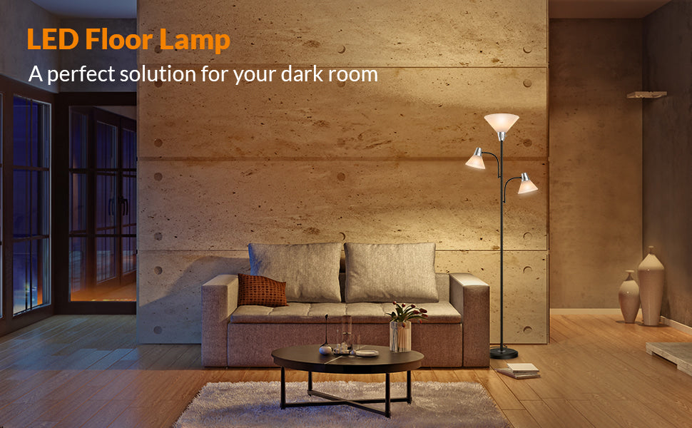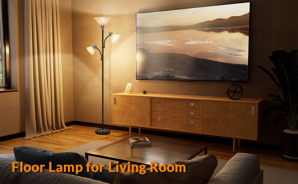 The standing lamp’s each light has an individual rotary switch, which is easy to control the light separately.Compatible with smart plug,remotely turn on the floor lamp, liberating your hands.